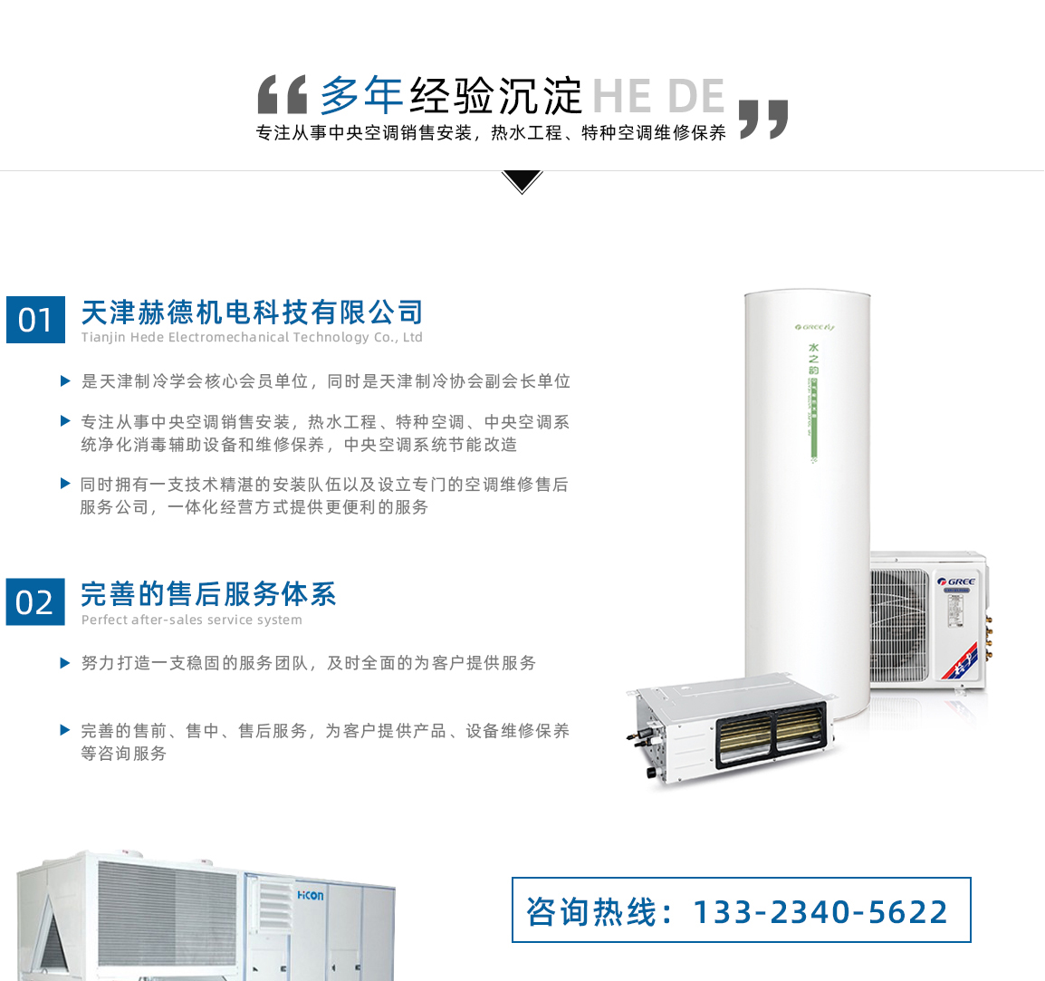 天津赫德機(jī)電科技有限公司是天津制冷學(xué)會(huì)會(huì)員單位,同時(shí)是天津制冷協(xié)會(huì)副會(huì)長(zhǎng)單位,位于天津市海泰經(jīng)濟(jì)區(qū),依托天津制冷學(xué)會(huì)團(tuán)隊(duì)資源從事中央空調(diào)銷(xiāo)售安裝,熱水工程、特種空調(diào)、中央空調(diào)系統(tǒng)凈化消毒輔助設(shè)備和維修保養(yǎng),中央空調(diào)系統(tǒng)節(jié)能改造。赫德機(jī)電致力于綠色建筑暖通,低能耗解決用戶冷暖,全心全意為用戶負(fù)責(zé),讓大地更綠天空更藍(lán)。企業(yè)服務(wù)宗旨:做綠色建筑暖通,低能耗解決用戶冷暖,全心全意為用戶負(fù)責(zé),讓大地更綠天空更藍(lán)。